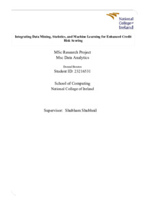 Benzon, Donnal (2025) Integrating Data Mining, Statistics, and Machine Learning for Enhanced Credit Risk Scoring. Masters thesis, Dublin, National College of Ireland.