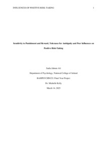 Ali, Sadia Jabeen (2025) Sensitivity to Punishment and Reward, Tolerance for Ambiguity and Peer Influences on Positive Risk-Taking. Undergraduate thesis, Dublin, National College of Ireland.