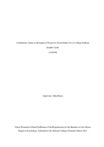 Castro, Jennifer (2025) A Qualitative Study on the Impact of Excessive Social Media Use on College Students. Undergraduate thesis, Dublin, National College of Ireland.