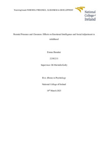 Danaher, Emma (2025) Parental Presence and Closeness: Effects on Emotional Intelligence and Social Adjustment in Adulthood. Undergraduate thesis, Dublin, National College of Ireland.