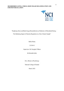 Fahim, Hafsa (2025) Exploring Stress and Body Image Dissatisfaction as Predictors of Disordered Eating: The Mediating Impact of Emotion Regulation in a Non-Clinical Sample. Undergraduate thesis, Dublin, National College of Ireland.