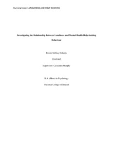 McKay Doherty, Roisin (2025) Investigating the Relationship Between Loneliness and Mental Health Help-Seeking Behaviour. Undergraduate thesis, Dublin, National College of Ireland.
