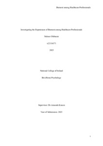 Obibueze, Nelson Nonso (2025) Investigating the Experiences of Burnout among Healthcare Professionals. Undergraduate thesis, Dublin, National College of Ireland.