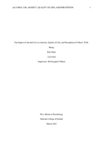 Shaw, Erin (2025) The Impact of Alcohol Use on Anxiety, Quality of Life, and Perceptions of Others’ Well-Being. Undergraduate thesis, Dublin, National College of Ireland.