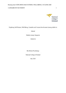 Junqueira, Nathaly Araujo (2025) Exploring Self-Esteem, Well-Being, Cannabis and Cocaine Involvement Among Adults in Ireland. Undergraduate thesis, Dublin, National College of Ireland.