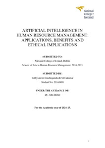 Dandinganahalli Shivakumar, Sathyashree (2025) Artificial Intelligence In Human Resource Management: Applications, Benefits And Ethical Implications. Masters thesis, Dublin, National College of Ireland.
