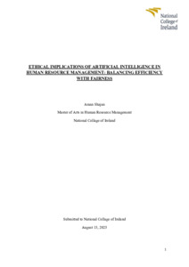 Shajan, Aman (2025) Ethical Implications of Artificial Intelligence in Human Resource Management: Balancing Efficiency with Fairness. Masters thesis, Dublin, National College of Ireland.