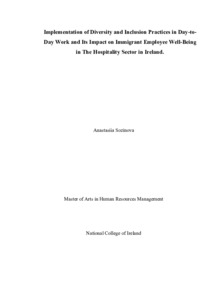 Sozinova, Anastasiia (2025) Implementation of Diversity and Inclusion Practices in Day-to-Day Work and Its Impact on Immigrant Employee Well-Being in The Hospitality Sector in Ireland. Masters thesis, Dublin, National College of Ireland.