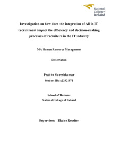 Sureshkumar, Prabhu (2025) Investigation on how does the integration of AI in IT recruitment impact the efficiency and decision-making processes of recruiters in the IT industry. Masters thesis, Dublin, National College of Ireland.