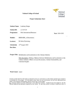 Deepa, Lakshmy (2025) Globalisation and Localisation in the Culinary Industry. Masters thesis, Dublin, National College of Ireland.