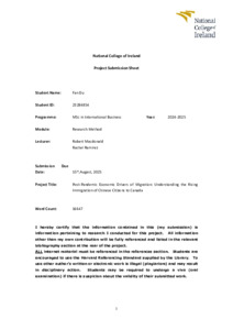 Du, Fan (2025) Post-Pandemic Economic Drivers of Migration: Understanding the Rising Immigration of Chinese Citizens to Canada. Masters thesis, Dublin, National College of Ireland.