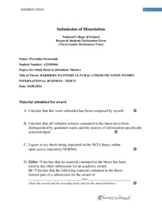 Szcześniak, Weronika (2025) Barriers to Intercultural Communication within International Business - Tesco. Masters thesis, Dublin, National College of Ireland.