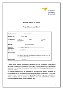 Venkatesan, Visal (2025) The impact of Work Environment on Work-Life Balance in the IT Sector in India. Masters thesis, Dublin, National College of Ireland.