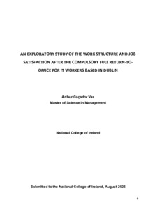 Vaz, Arthur Caçador (2025) An exploratory study of the work structure and job satisfaction after the compulsory full return-to-office for IT workers in Dublin. Masters thesis, Dublin, National College of Ireland.
