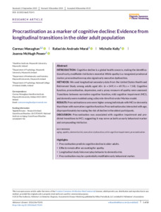 Monaghan, Cormac, de Andrade Moral, Rafael, Kelly, Michelle E. and McHugh Power, Joanna E. (2026) Procrastination as a marker of cognitive decline: Evidence from longitudinal transitions in the older adult population. Alzheimer's & Dementia, 18 (1). ISSN 2352-8729