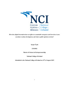 Üçok, Sarper (2025) How does digital innovation have an effect on sustainable enterprises and how these issues correlate to urban development, and what is public opinion on them? Masters thesis, Dublin, National College of Ireland.