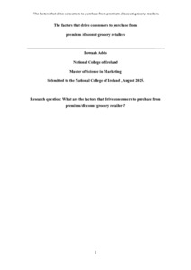 Addo, Bowaah Nyamekye (2025) The factors that drive consumers to purchase from premium / discount grocery retailers. Masters thesis, Dublin, National College of Ireland.