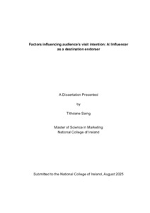 Saing, Tithdane (2025) Factors influencing audience’s visit intention: AI Influencer as a destination endorser. Masters thesis, Dublin, National College of Ireland.