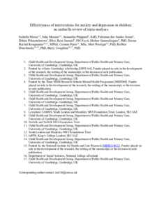 Morse, Isabella, Mannes, Julia, Phippard, Samantha, ..., - and Coughlan, Barry (2025) Effectiveness of interventions for anxiety and depression in children: an umbrella review of meta-analyses [Preprint]. PsyArXiv.