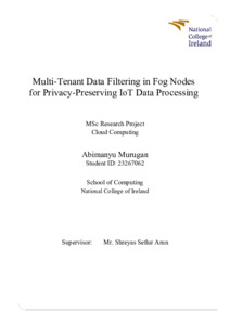 Murugan, Abimanyu (2025) Multi-Tenant Data Filtering in Fog Nodes for Privacy-Preserving IoT Data Processing. Masters thesis, Dublin, National College of Ireland.
