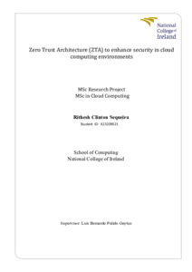 Sequeira, Rithesh Clinton (2025) Zero Trust Architecture (ZTA) to enhance security in cloud computing environments. Masters thesis, Dublin, National College of Ireland.
