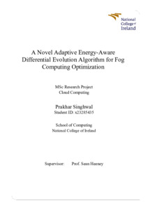 Singhwal, Prakhar (2025) A Novel Adaptive Energy-Aware Differential Evolution Algorithm for Fog Computing Optimization. Masters thesis, Dublin, National College of Ireland.